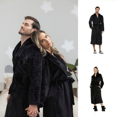 Robe Longo Manga Longa Fleece Toque Íntimo Preto 1802018 M
