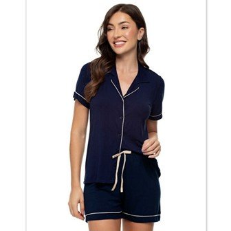 Short Doll Manga Curta Aberto de Botões Viscolycra Toque Íntimo Marinho 1901011 G